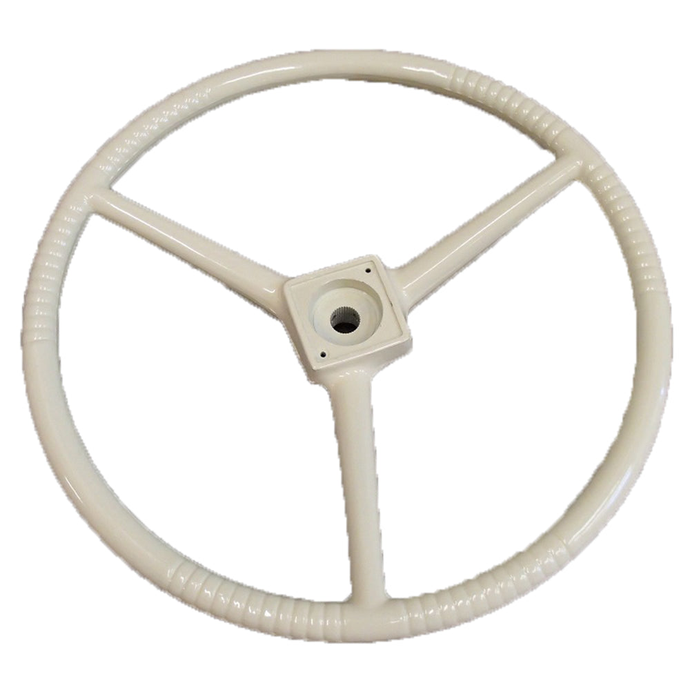 17-1/2" Diameter 36 Splined Hub 7/8" Shaft 3 Covered Steel Spokes Creme ColoredReference Numbers: