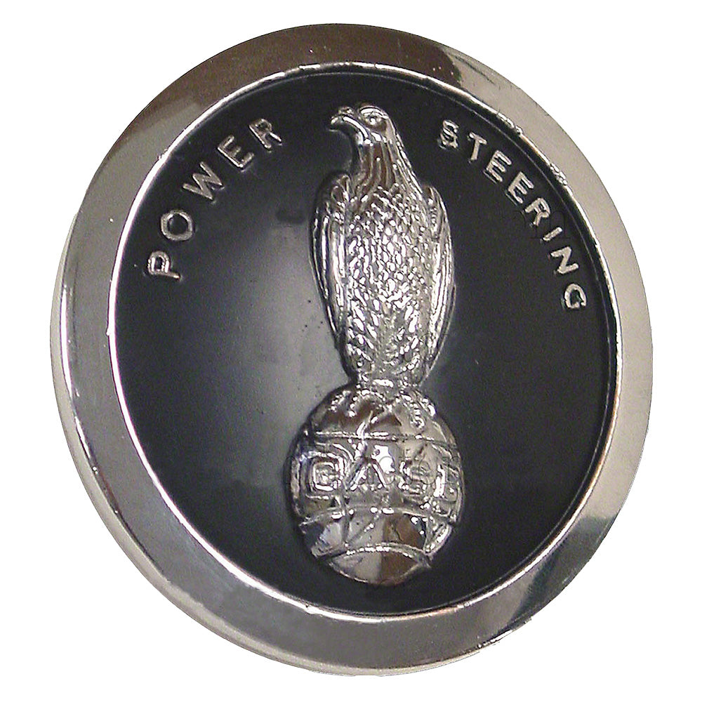One New Aftermarket Replacement Steering Wheel Center Emblem that Fits Case-IH Tractor Models: 1030 Comfort King, 1030 Draft-O-Matic, [ 200B, 210B, 211B, 300B, 301B, 302B, 310B, 311B, 312B, 320B, 400B, 410B, 411B, 420B, 200, 210, 211, 300, 301, 302, 310, 311, 312, 320 (Sn: 6120001 & up) ], [ 430CK, 530 Construction King, 430, 431, 440, 441, 470, 530, 531, 540, 541, 570 ( Tractors without exposed steering cylinders & all manual steering) ], [ 600B, 610B, 611B, 614B (Sn: 6095009 & up) ], [ 730CK, 830 Comfort King, 830 Draft-O-Matic, 730, 731, 732, 733, 734, 740, 741, 742, 743, 744, 830, 831, 832, 833, 840, 841, 842, 843 ((Also fits GROVE Sn: 8253501 & up) ) ], 930 Comfort King, 930 Draft-O-Matic, 630, 631, 632, 634, 640, 641, 642, 644, 930, 931, 932, 1030, 1031, 1032