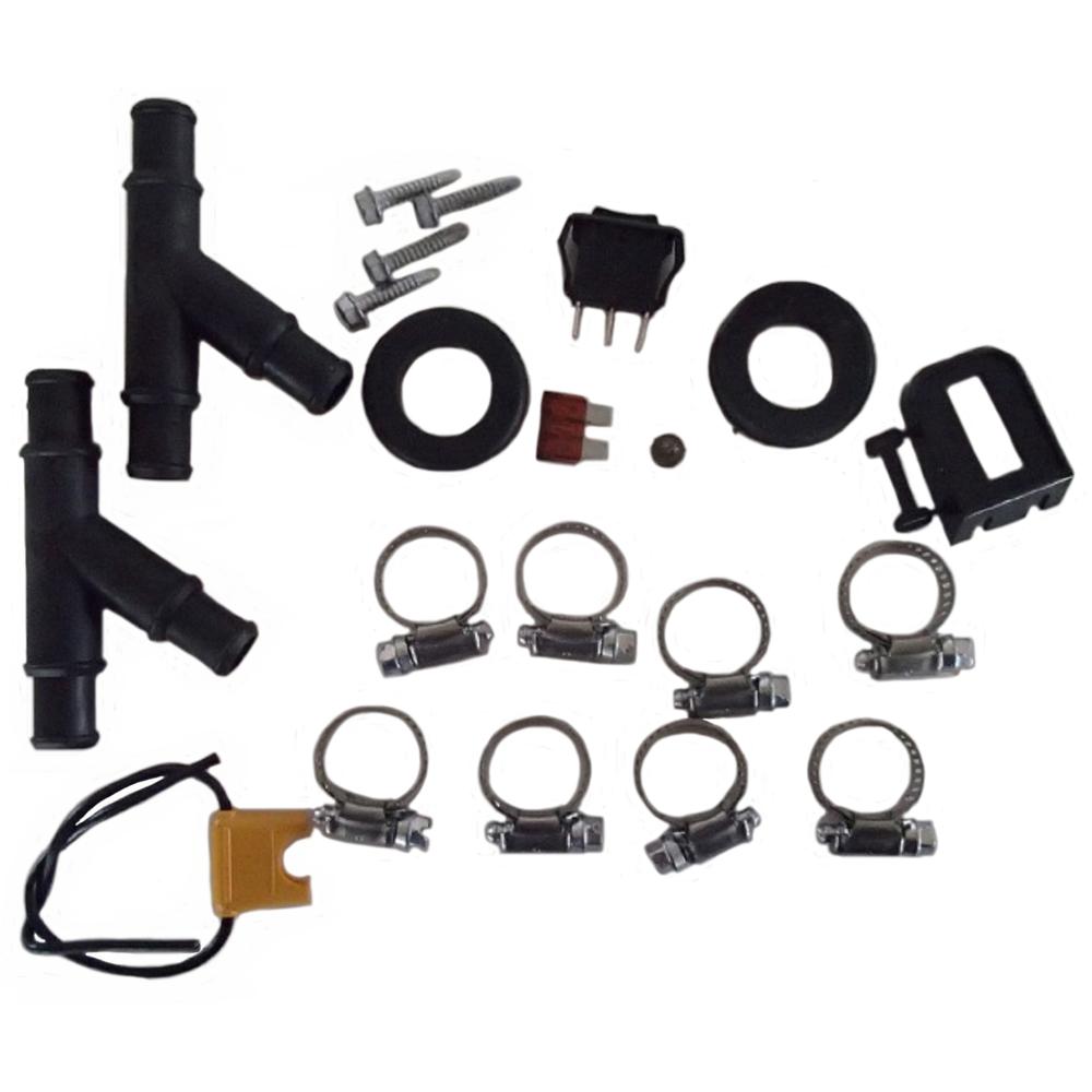 12V 16,000 BTU Auxiliary Heater Has Through the Floor Hose Connections Connections: 5/8" Height: 6-3/4" Length: 6-1/2" Overall Depth: 7" Volt: 12 Features: Compact Size Full Front Grill Floor Hose Connections Single Blower Motor Heavy Duty Powder Coated FinishReference Numbers: