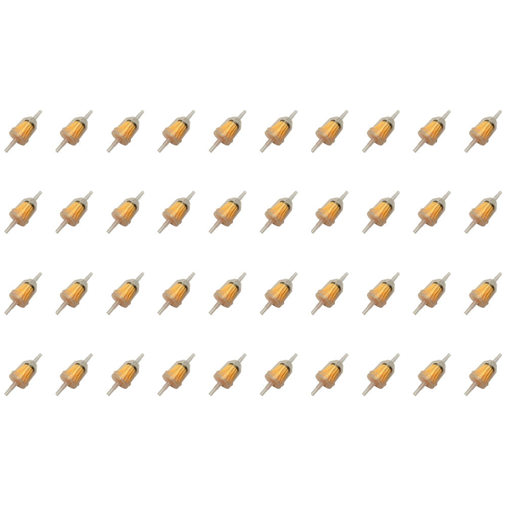 Includes Forty (40) Fuel Filters Diameter: 1-1/2" Overall Length: 4-1/8" Micron: 23-28 Compatible with 1/4" or 5/16" Fuel LinesReference Numbers:
