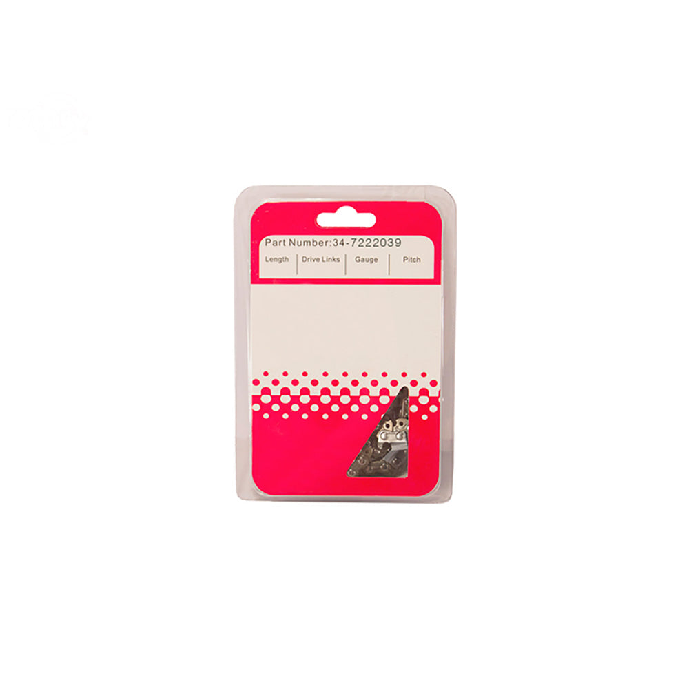 Fits 10" Bars Pitch: 3/8" Low Profile Gauge: .050" Drive Links: 39 Uses 5/32" File Style: Semi-ChiselReference Numbers: