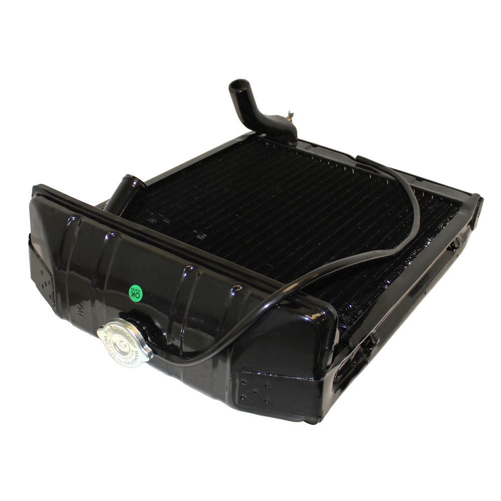 (1) Radiator to Front Support Bolt Kit 7/16"-14 UNC x 1-1/4" Includes 2 each carriage bolts, nuts and lock washers Replaces Part Number(s): 34090S, 34670, 34808, 351641S8, 351655S8, 44732 (1) Upper Radiator Hose 1.450" inside diameter Replaces Part Number: C5NN8260D (1) Upper Radiator Hose 1-1/4" Inside Diameter 7-3/8" Length Replaces Part Number(s): 310048, NAA8260B (1) Lower Radiator Hose Water pump to lower radiator, Inside Diameter: 1.5" Replaces Part Number: 312588 (2) Radiator Pad (Square) 2" x 2" x 1/4" (Square not Round) 1/4" thick 2 used per Tractor Replaces Part Number(s): 594762, B9NN8125A, C0NN8125A, C5NN8125A (if trimmed) (1) Radiator Core Height 17 1/2" Core Thickness 2 1/4" Core Width 15 1/4" Fins per Inch 8 Height 24" Lower Hose Connection OD 1 1/2" Mounting Width 12 1/3" Neck Height 3/4" Pressure Cap Included Rows 3 Thickness 2 3/4" Top Hose Connection OD 1 1/4" Width 18" Replaces Part Number(s): NCA8005C, NDA8005B, NCA8005BReference Numbers: